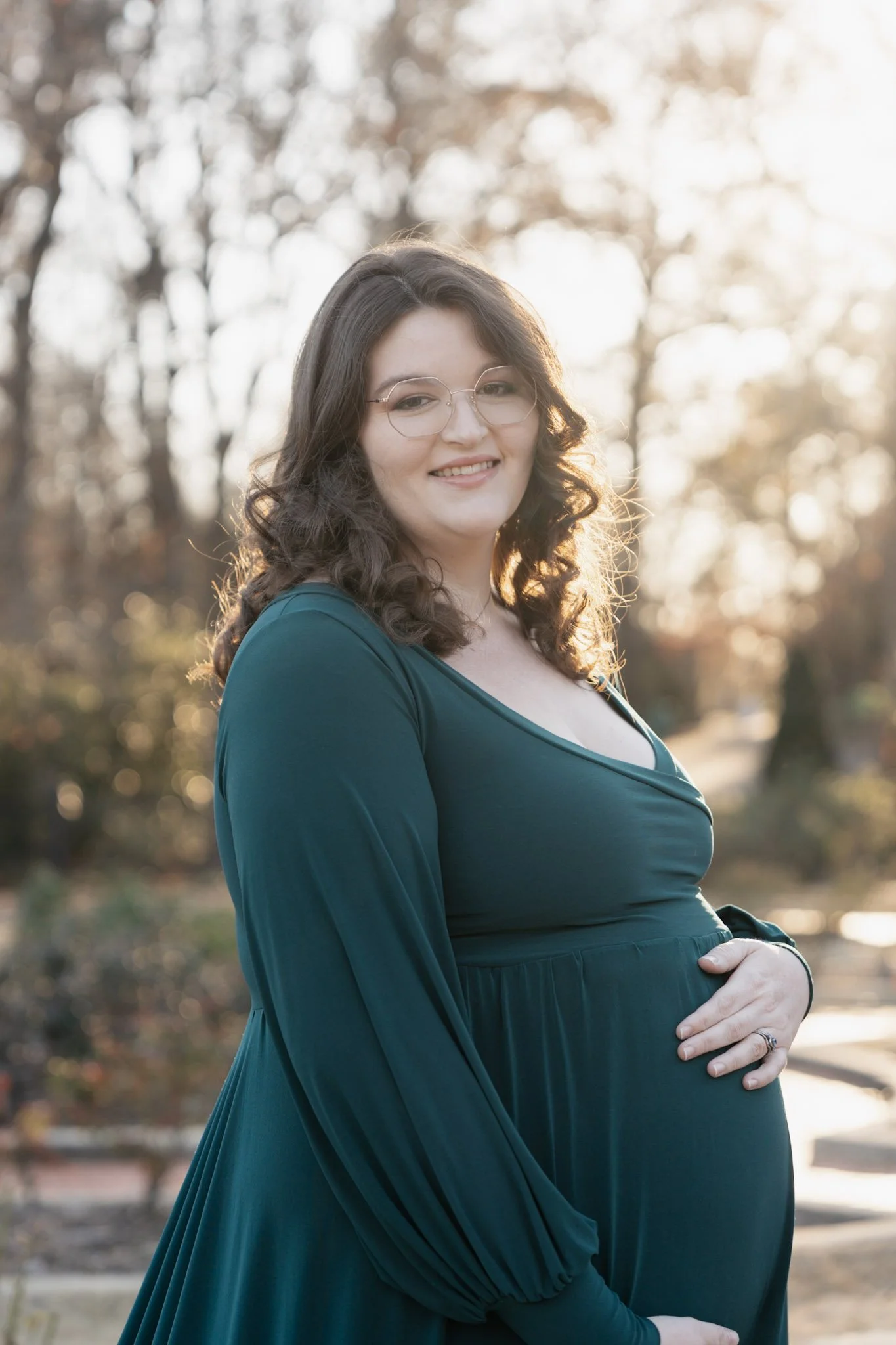 If you are searching for the best outdoor maternity photo location in Birmingham, Alabama, golden hour at the Botanical Gardens is hard to beat. The way the sun filters through the trees creates that soft, luminous glow that makes maternity portraits feel warm and cinematic.